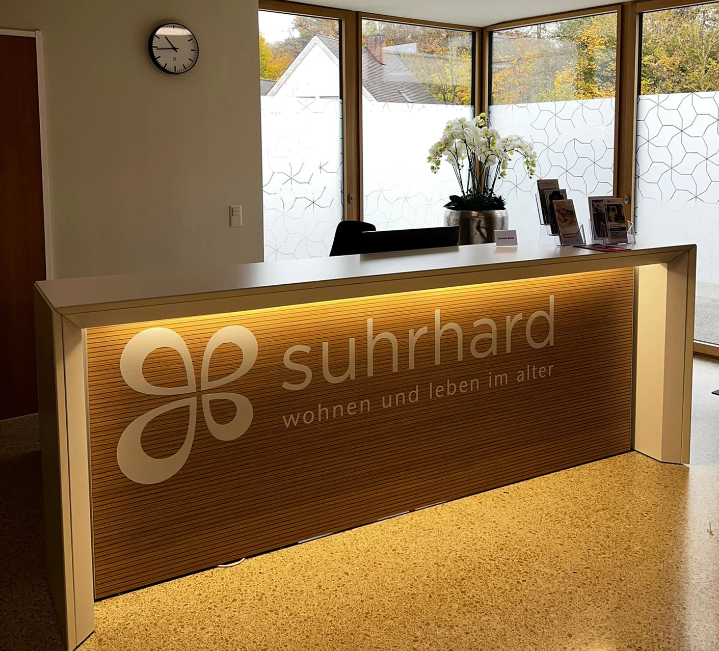 Für unseren Kunden durften wir die gesamte Beschriftung realisieren – vom Eingangsbereich über die Tiefgarage bis zur markanten Aussenbeschriftung. Ergänzend dazu gestalteten und produzierten wir auch die passenden Drucksachen: von der Broschüre bis zu den Visitenkarten, die in Zusammenarbeit mit unserer Partnerfirma umgesetzt wurden.