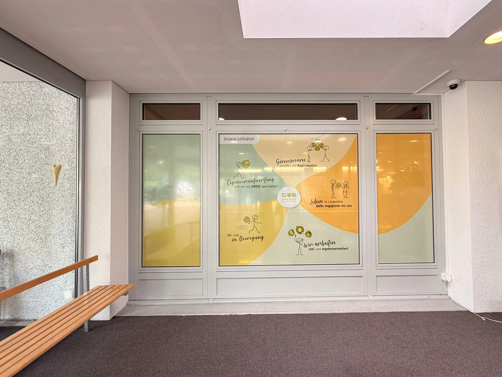 Für das Pflegezentrum Lindenfeld haben wir ein Beschriftungskonzept umgesetzt: Von der Gebäudebeschriftung über Türen bis zum Empfangsbereich. Die hochwertige Umsetzung sorgt dafür, dass sich Bewohnende, Besucher und Mitarbeitende leicht zurechtfinden – funktional, freundlich und professionell.